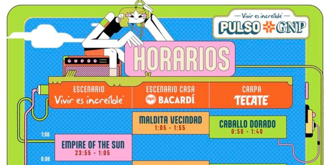Querétaro, Qro., 15 de octubre de 2025.- El Festival Pulso GNP da a conocer los horarios de cada artista para su edición 2025. Los asistentes ya pueden planificar su ruta musical para no perderse ninguna actuación en los tres escenarios disponibles.