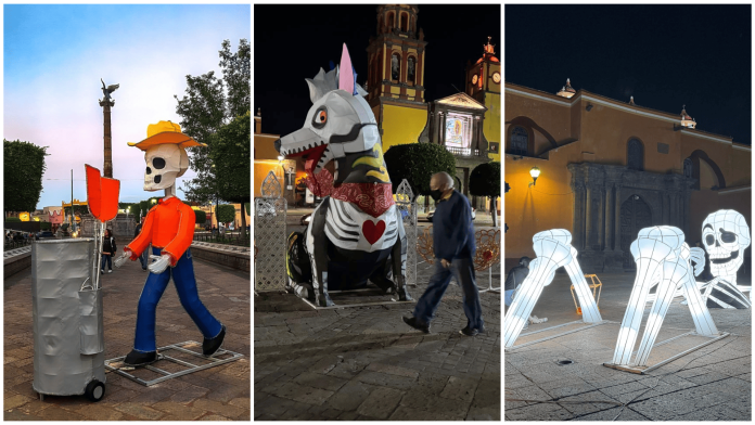 Mora Rico informó que los adornos temáticos que engalanarán al municipio incluyen una calavera monumental de 4.5 metros de altura en el Puente de la Historia; una “calavera relajada” de más de dos metros de alto en el atrio de la iglesia principal; figuras del Xoloitzcuintle, oficios tradicionales, calaveras y faroles decorativos en el Jardín Independencia; así como un cráneo huichol en la glorieta de Las Garzas.