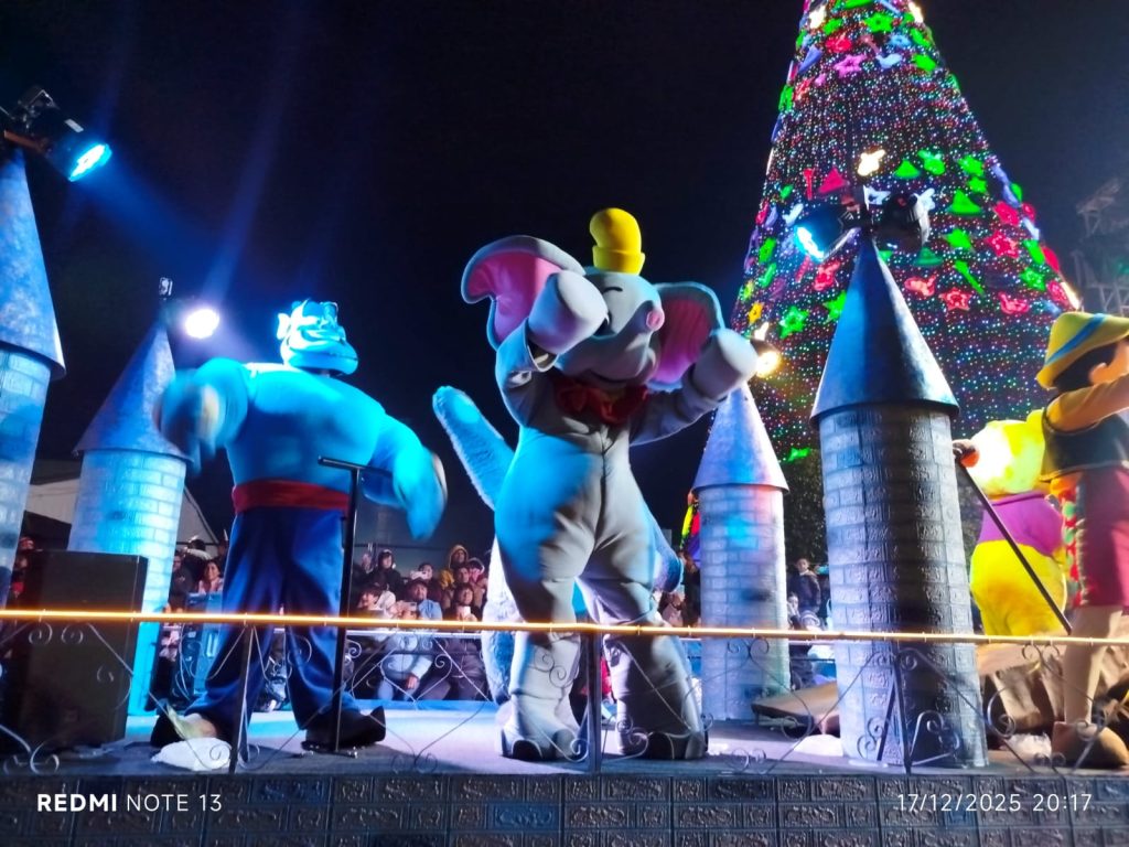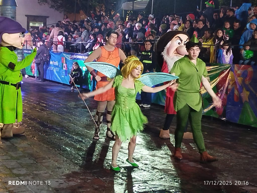 El desfile comenzó a las 19:00 horas, siendo uno de los momentos más esperados por las familias, especialmente por los niños que aguardaban con entusiasmo a Santa Claus y sus elfos, quienes encabezaron el recorrido. Posteriormente, personajes entrañables como Mickey Mouse y otras figuras animadas avanzaron entre aplausos, despertando la emoción de chicos y grandes.