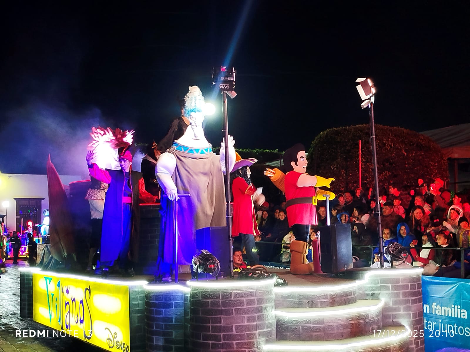 En total, más de 17 carros alegóricos recorrieron las principales vialidades del centro, acompañados de música, luces y un espectáculo de pirotecnia que iluminó el cielo nocturno. La celebración se vio realzada por el árbol monumental instalado por el Sistema Estatal DIF, el cual se consolidó como uno de los principales atractivos de la velada.