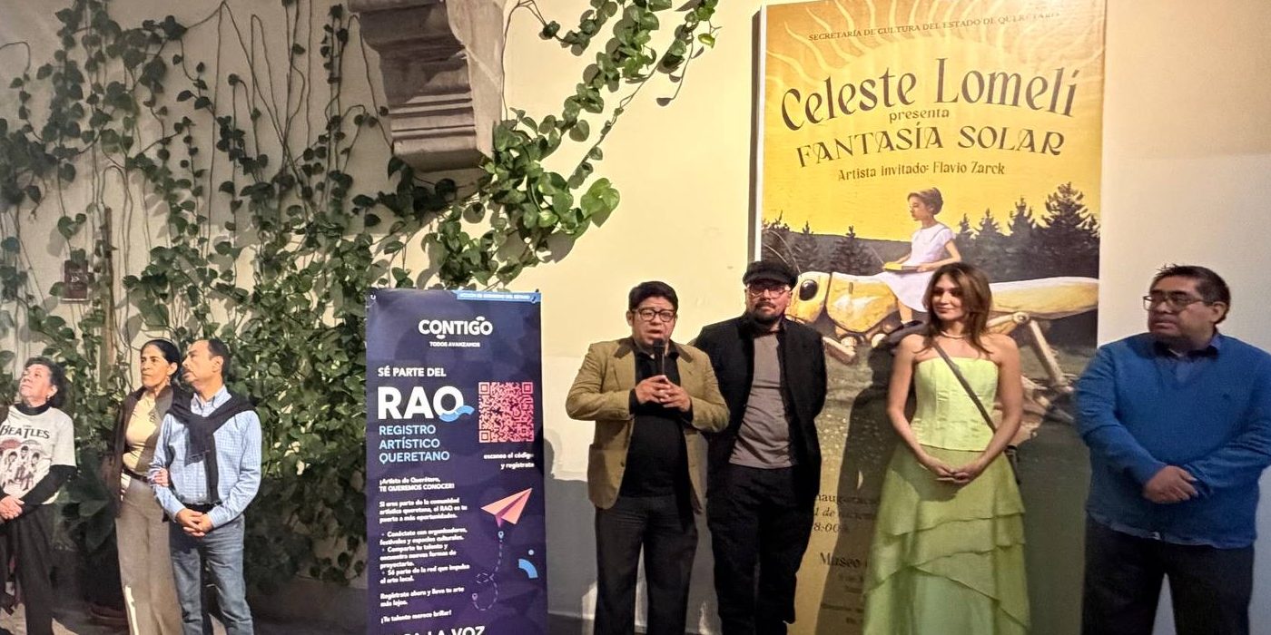 Querétaro, Qro., 17 de diciembre de 2025. Imaginación, naturaleza, tecnología y el niño interior al servicio de la vida, son los elementos de “Fantasía Solar”, la exposición de Celeste Lomelí, inaugurada en el Museo de los Conspiradores. En donde, a través de escenas oníricas, insectos robot, paisajes llenos de naturaleza y figuras que evocan momentos de la niñez, la artista construye una visión luminosa del futuro.