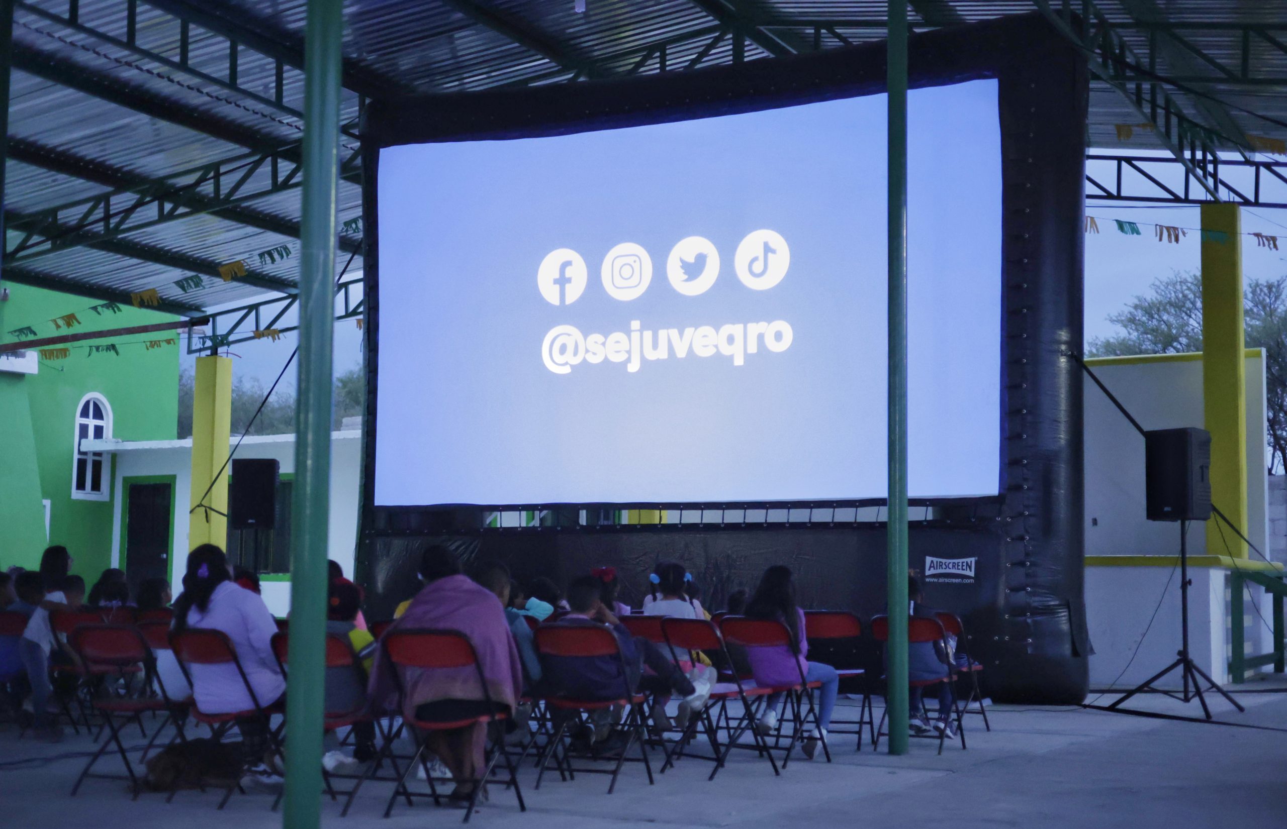 Querétaro, Qro., 26 de diciembre de 2025. Con el objetivo de acercar la cultura cinematográfica a colonias y comunidades del estado, la Secretaría de la Juventud del estado de Querétaro (SEJUVE), encabezada por Virginia Hernández Vázquez, dio continuidad durante 2025 al programa Cine Contigo.