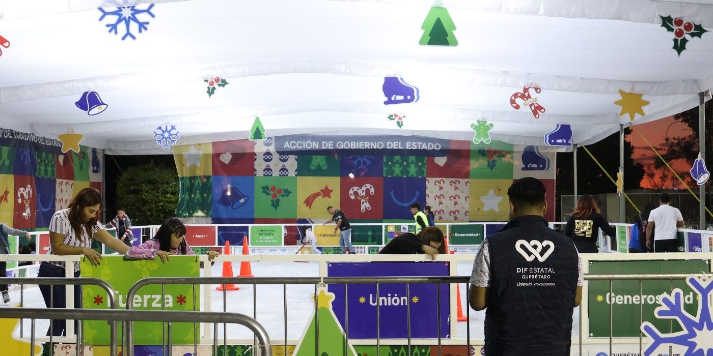 Querétaro, Qro., 29 de diciembre de 2025. En el marco del Festival Alegría Contigo 2025, el director general del Sistema Estatal DIF, Óscar Gómez Niembro, informó que continúan funcionando las pistas de hielo que forman parte de las festividades decembrinas, mismas que están instaladas en los municipios de Querétaro y Corregidora.