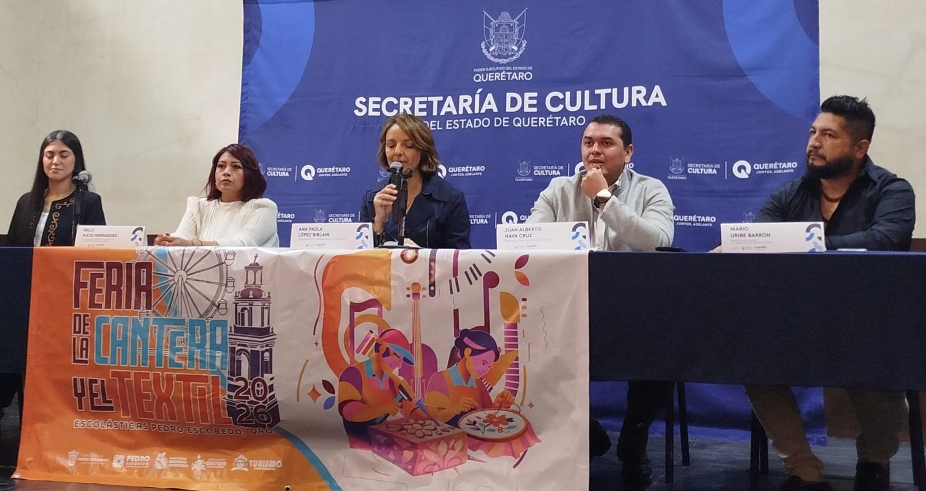 Querétaro, Qro., 27 de enero de 2026. El municipio de Pedro Escobedo presentó la próxima edición de la Feria de la Cantera y el Textil Escolásticas. Este encuentro busca exaltar el valor de las piezas artesanales y fortalecer la identidad de la comunidad mediante una cartelera que une la tradición con el espectáculo.