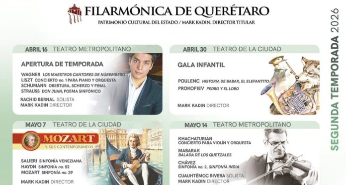Con esta programación diversa que abarca desde el clasicismo y el romanticismo hasta producciones familiares y fusiones contemporáneas, la Filarmónica de Querétaro reafirma su compromiso con la difusión de la música sinfónica y con la ampliación de públicos en el estado.