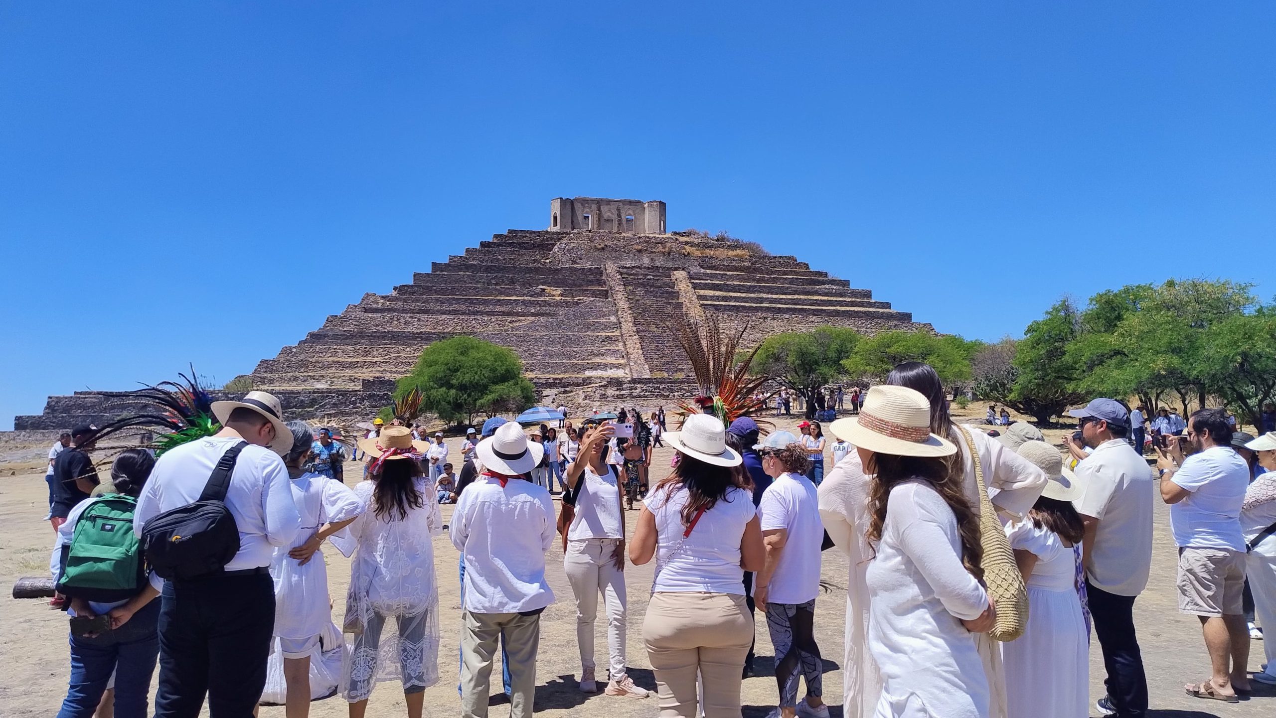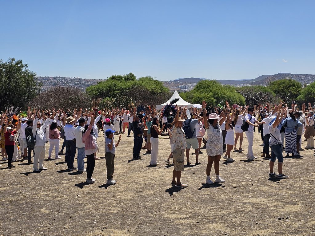 Querétaro, Qro., 21 de marzo de 2026.- La Zona Arqueológica “El Cerrito” se convirtió una vez más en el epicentro de la renovación. Cientos de personas, acudieron al llamado de vestir de blanco, se congregaron frente a la imponente piramide para recibir la energía de la primavera en el marco del equinoccio.